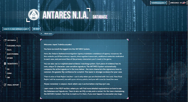 Toisten korttien lisäksi johtolangat voivat viitata Antares Databaseen. Se on oikea nettisivusto, jossa voi tehdä henkilöhakuja, tutkia poliisiraportteja jne. Antareksen tietopankin hyödyntäminen onkin ensiarvoisen tärkeä työkalu ja on hyvä, jos kaikilla on käsillä jokin laite sen käyttöön. Tämän lisäksi voi käyttää Wikipediaa, Googlea ja Google Mapsia niin paljon kuin haluaa. Tietokannan ja yleisesti netin käyttö ei kuluta etsivien aikaa, joten sen käyttö on “ilmaista” tutkimusta ja siksi tärkeää.